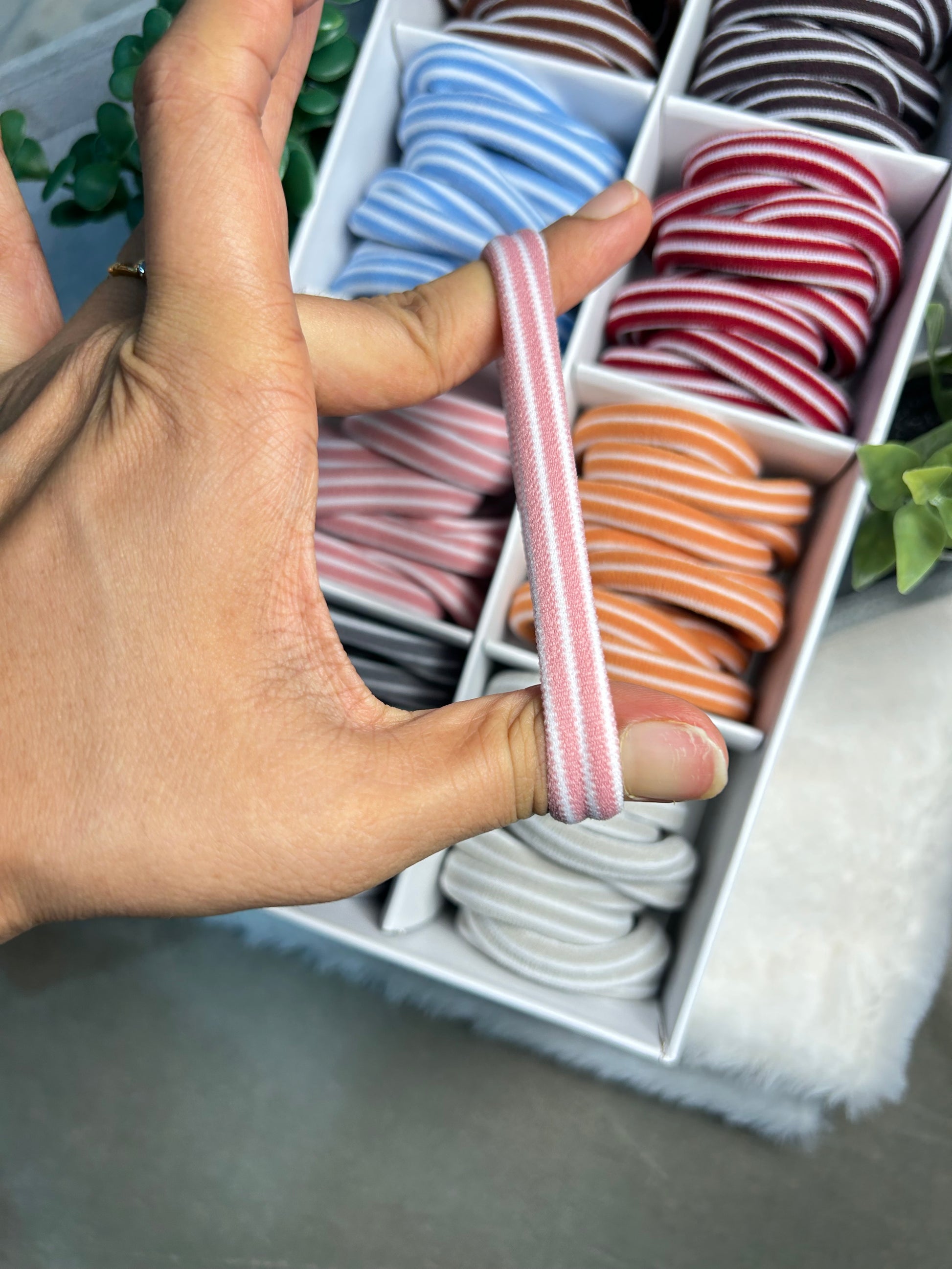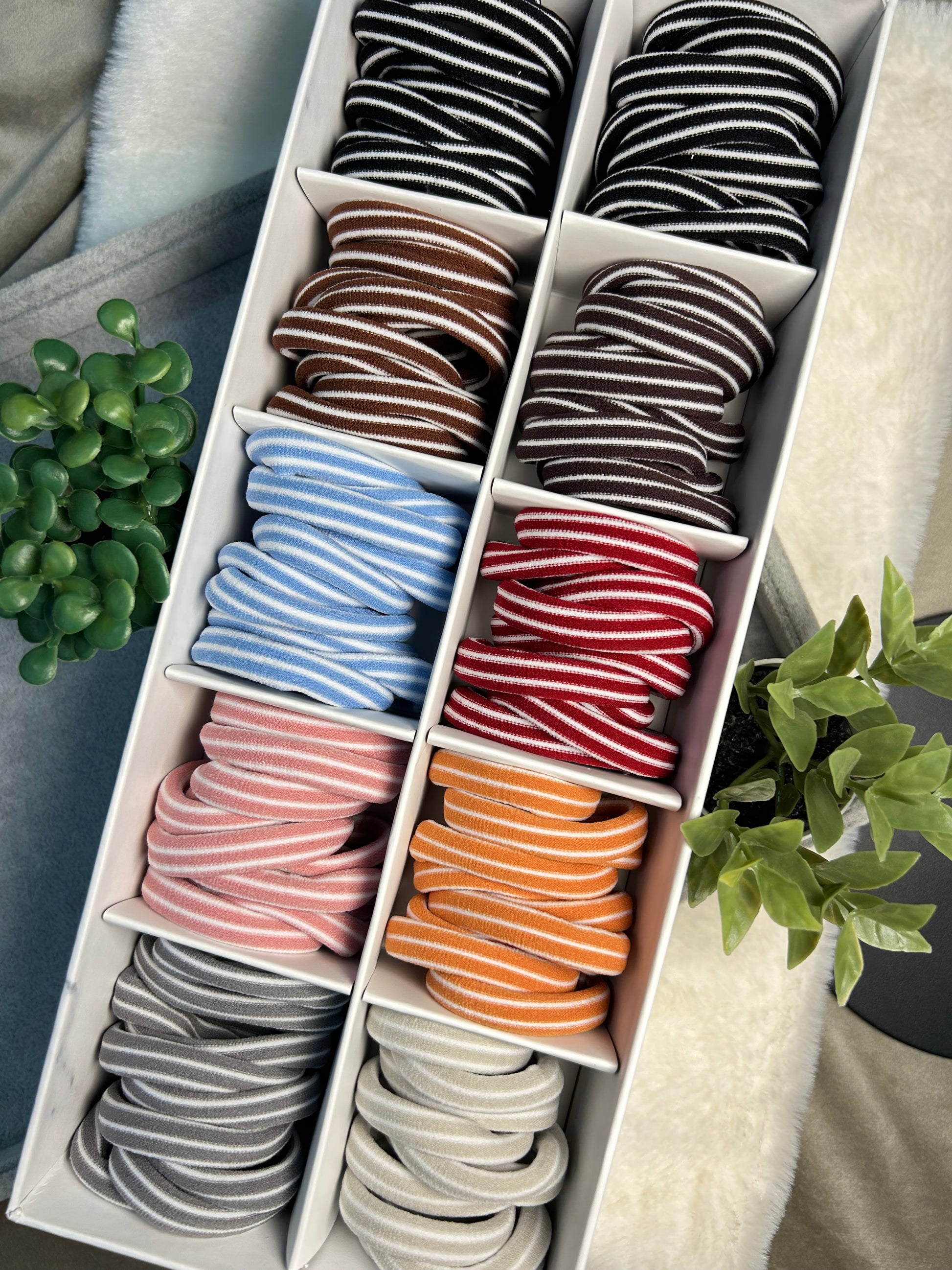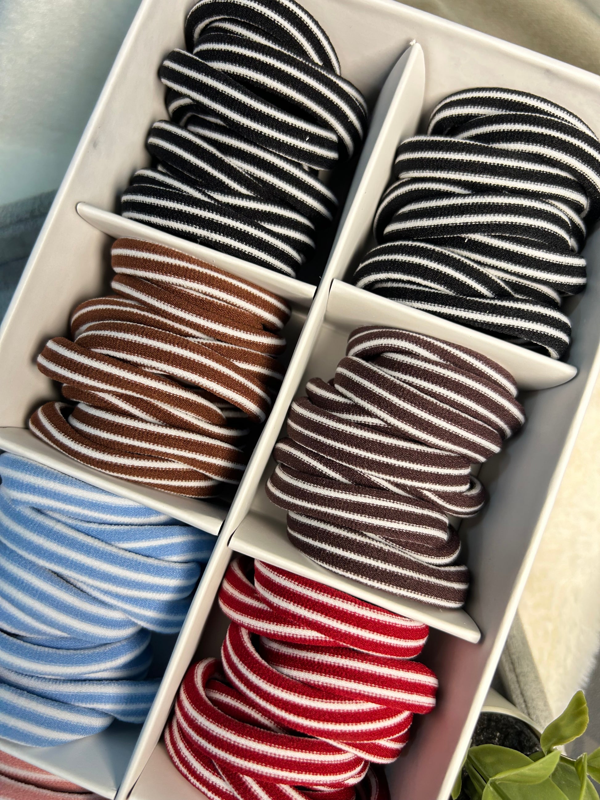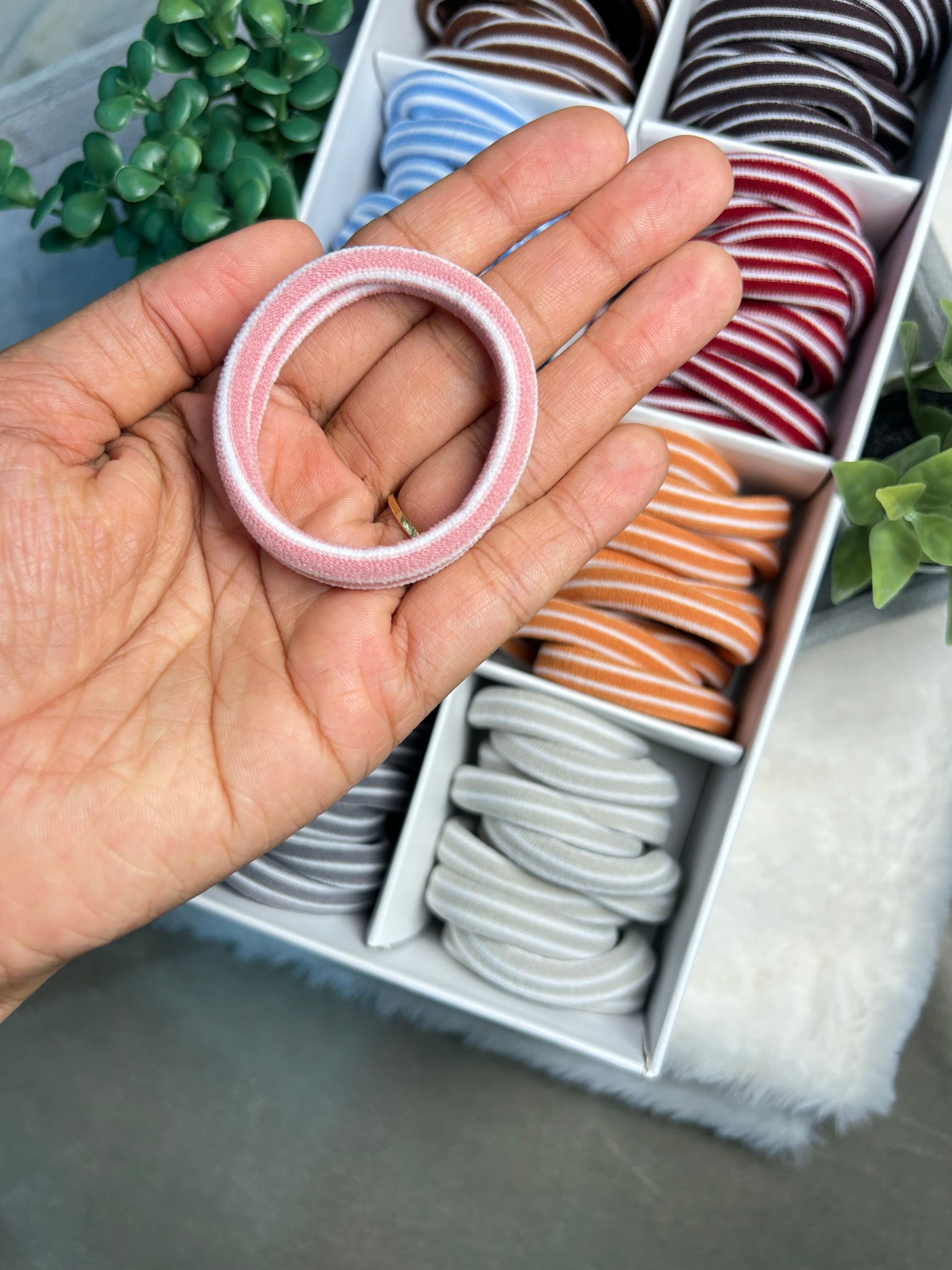 - Pack of 10 striped elastic hair ties