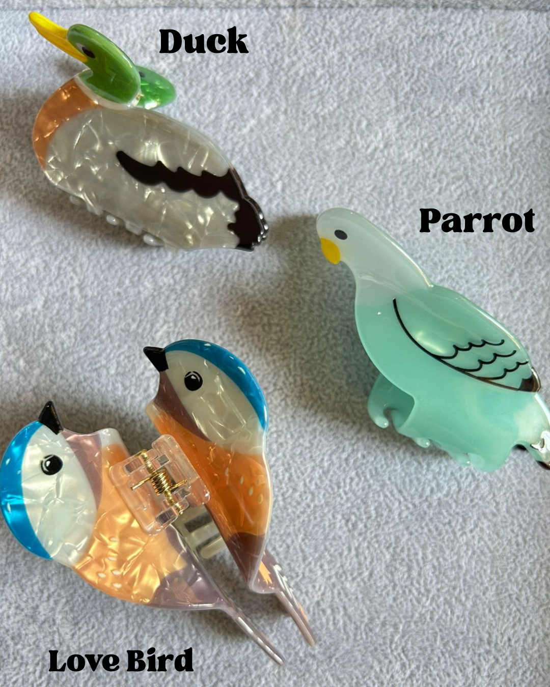 Add a pop of charm to your hair game with these quirky and adorable Bird-Shaped Hair Claw Clips, each priced at just ₹120. Inspired by nature, these clips come in 6 unique bird designs – Duck, Parrot, Lovebirds, Blue Tits, Peacock, and Owls – each with its own cute character and vibrant colors.