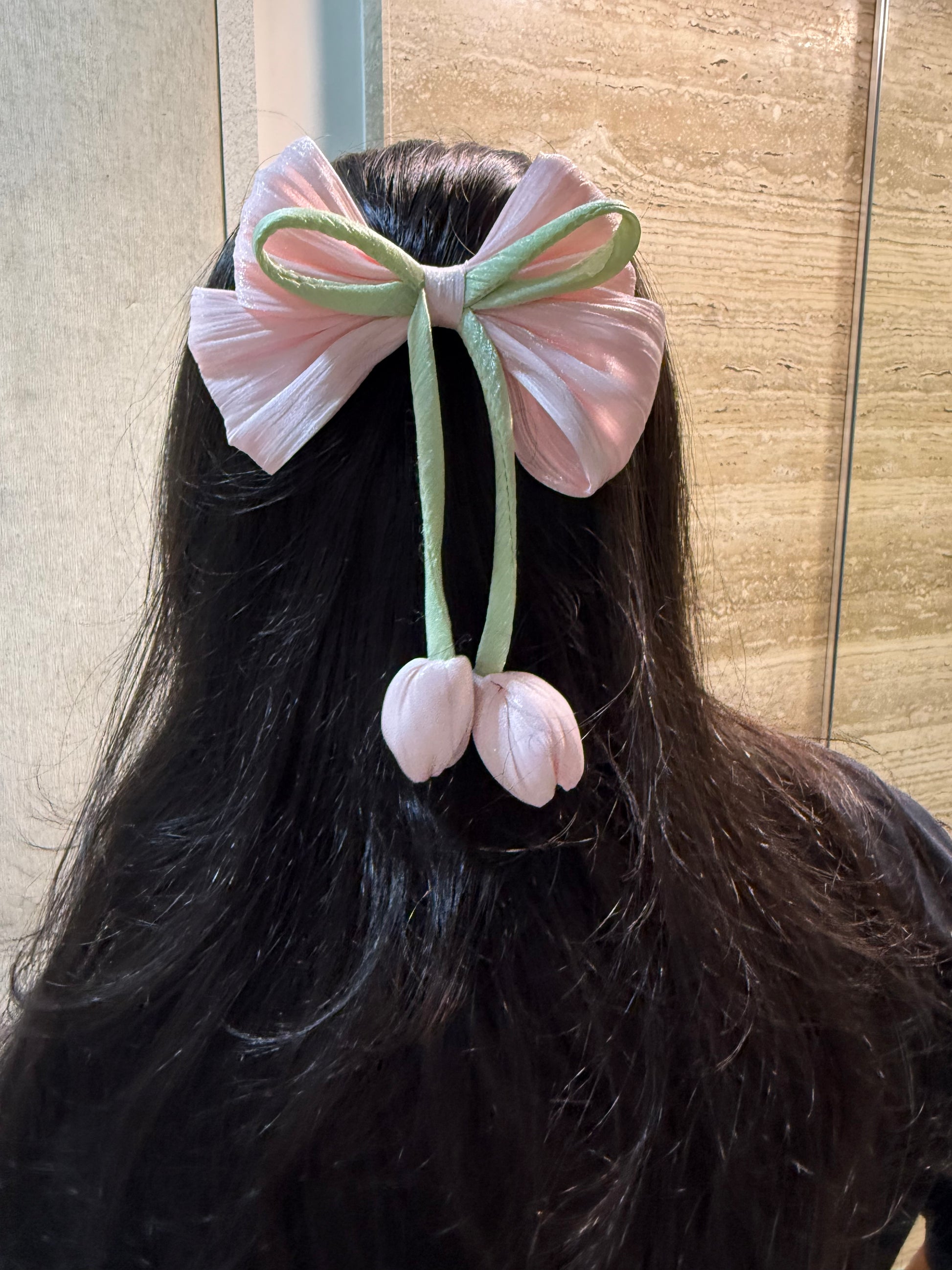 Add a touch of floral charm to your hairstyles with these stunning Tulip Bow Clips. Crafted from soft satin in elegant pastel shades, each clip features a beautifully layered bow and two dainty tulip buds, creating a unique and delicate look. Perfect for both kids and adults, these clips are ideal for everyday styling or special occasions.