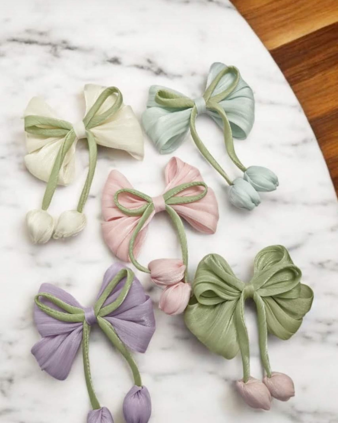 Tulip Bloom Satin Bow Clips